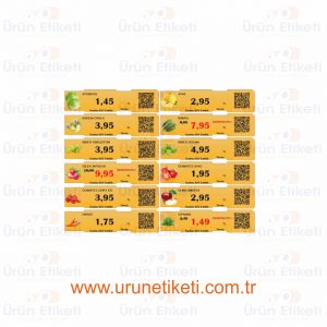 Market Fiyat Etiketleri diğer adıyla raf etiketleri, genellikle market, manav, kuruyemişci, eczane, şarküteri, depolar gibi ürünlerin sergilendiği ve depolandığı raf ve standlarda kullanılan, kağıt bazlı ve yapışkansız etiket türüdür. Baskılı ve baskısız olarak üretilip, üretildikten sonra kullanıma göre üzerine üzerine barkod yazıcılar vasıtasıyla ribonsuz olarak ihtiyaç duyulan bilgiler yazılır.